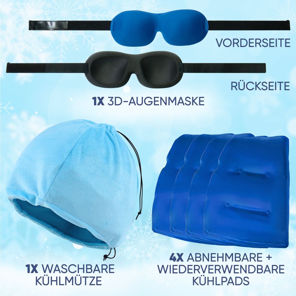 Kühlmütze EXTREM – Mit 4 Kühlakkus & 3D-Augenmaske