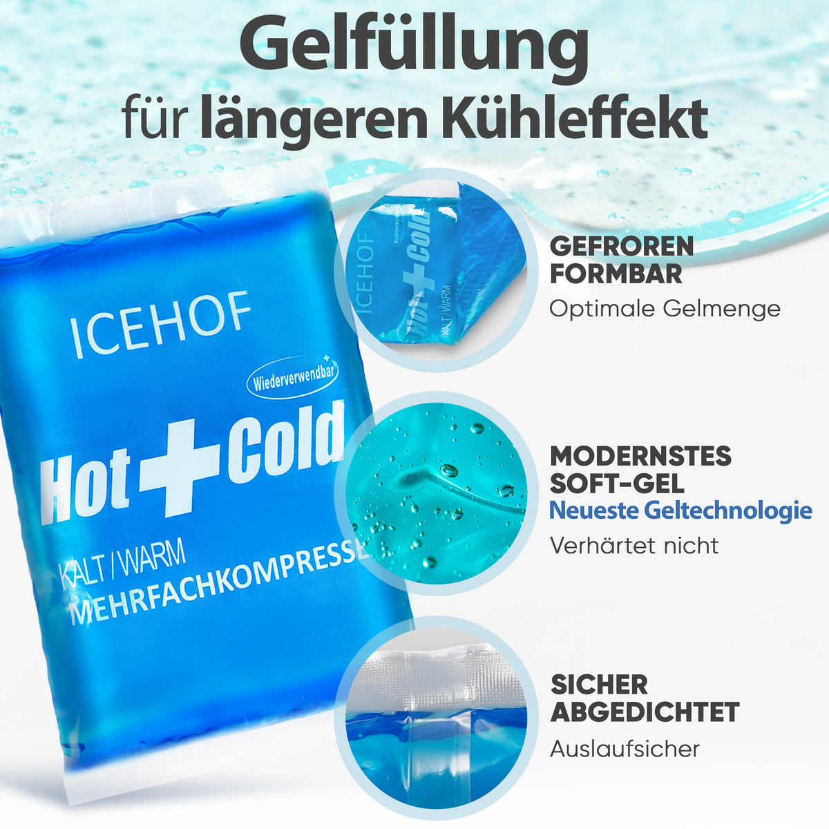 - Material: Hochwertiges Soft-Gel, langlebig & wiederverwendbar