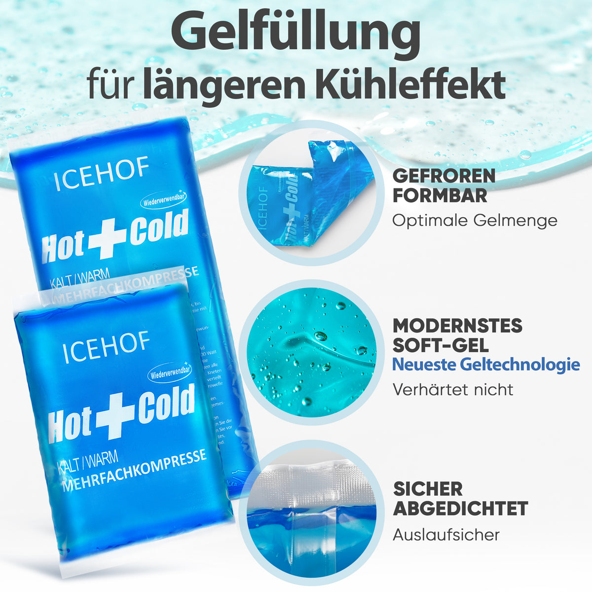 Die ICEHOF Kühlpads helfen bei Schmerzen, Schwellungen & Verspannungen – ob nach Sport, Verletzungen oder Operationen. Dank Soft-Gel-Füllung bleiben sie auch gefroren weich und passen sich jeder Körperpartie optimal an.