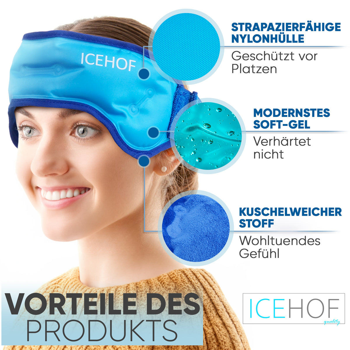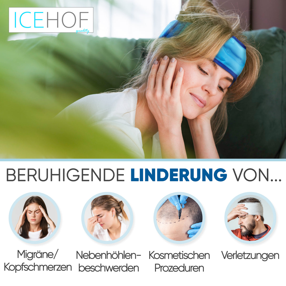 Das ICEHOF Migräneband kombiniert Kälte- & Wärmetherapie in einem Produkt. Einfach im Kühlschrank/Gefrierfach kühlen oder in der Mikrowelle erwärmen – schon sorgt das Gelpad für schnelle Erleichterung.