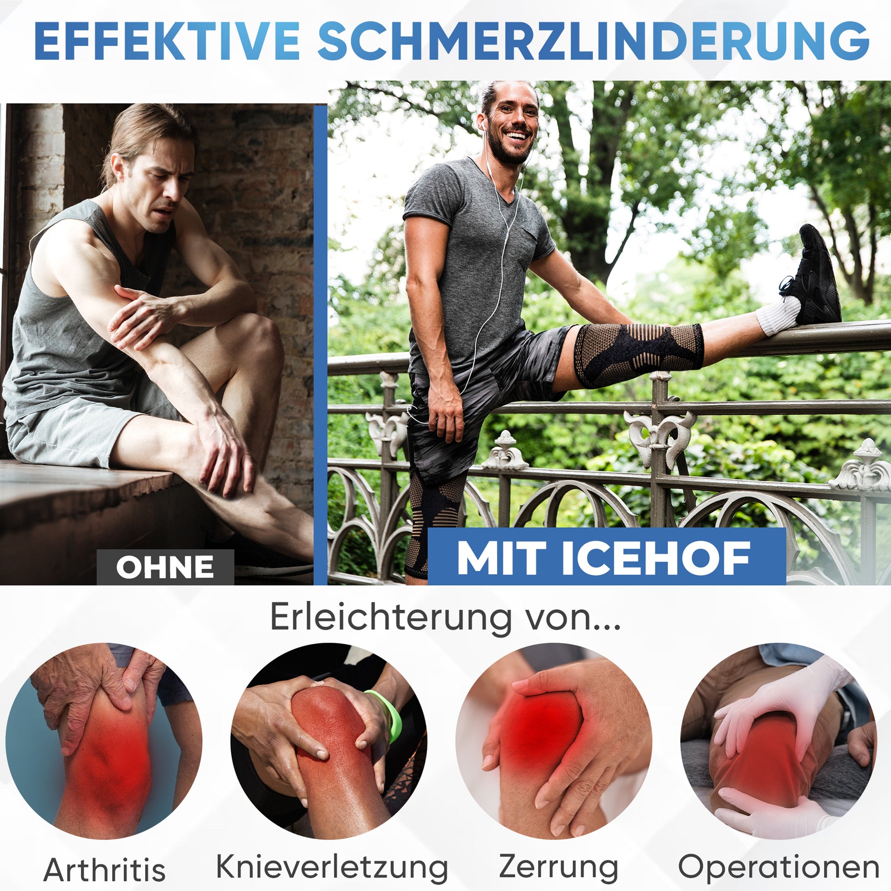 Die ICEHOF® Kupfer-Kniebandage wurde entwickelt, um Schmerzen zu lindern, Entzündungen zu reduzieren und gleichzeitig maximale Bewegungsfreiheit zu ermöglichen – egal ob im Alltag, beim Sport oder in der Regeneration.