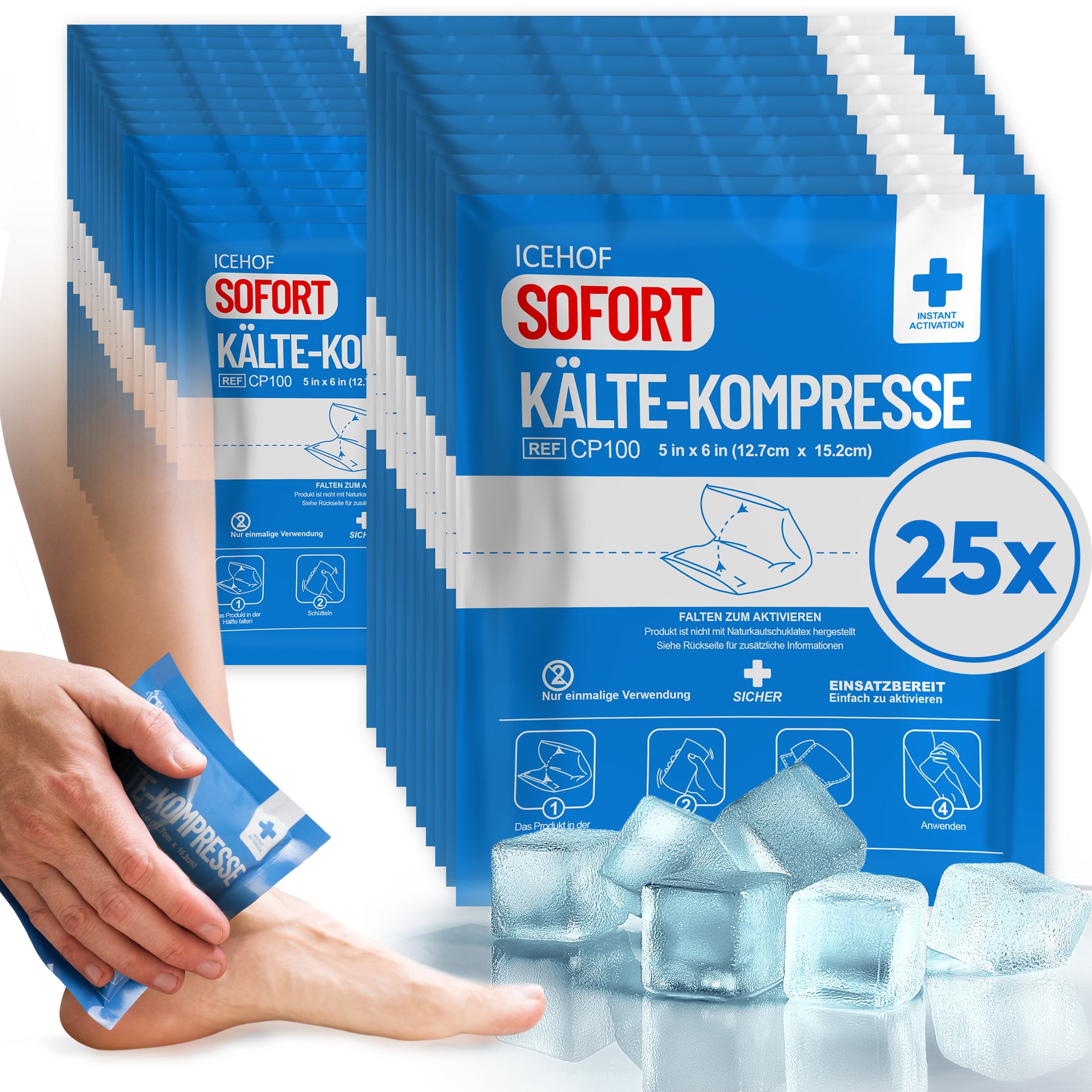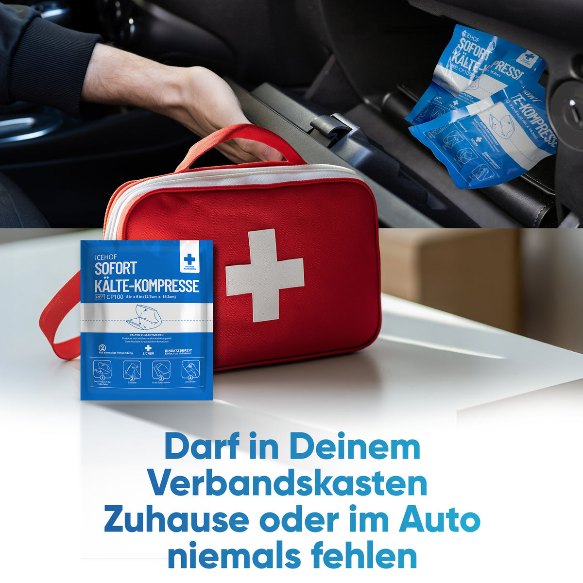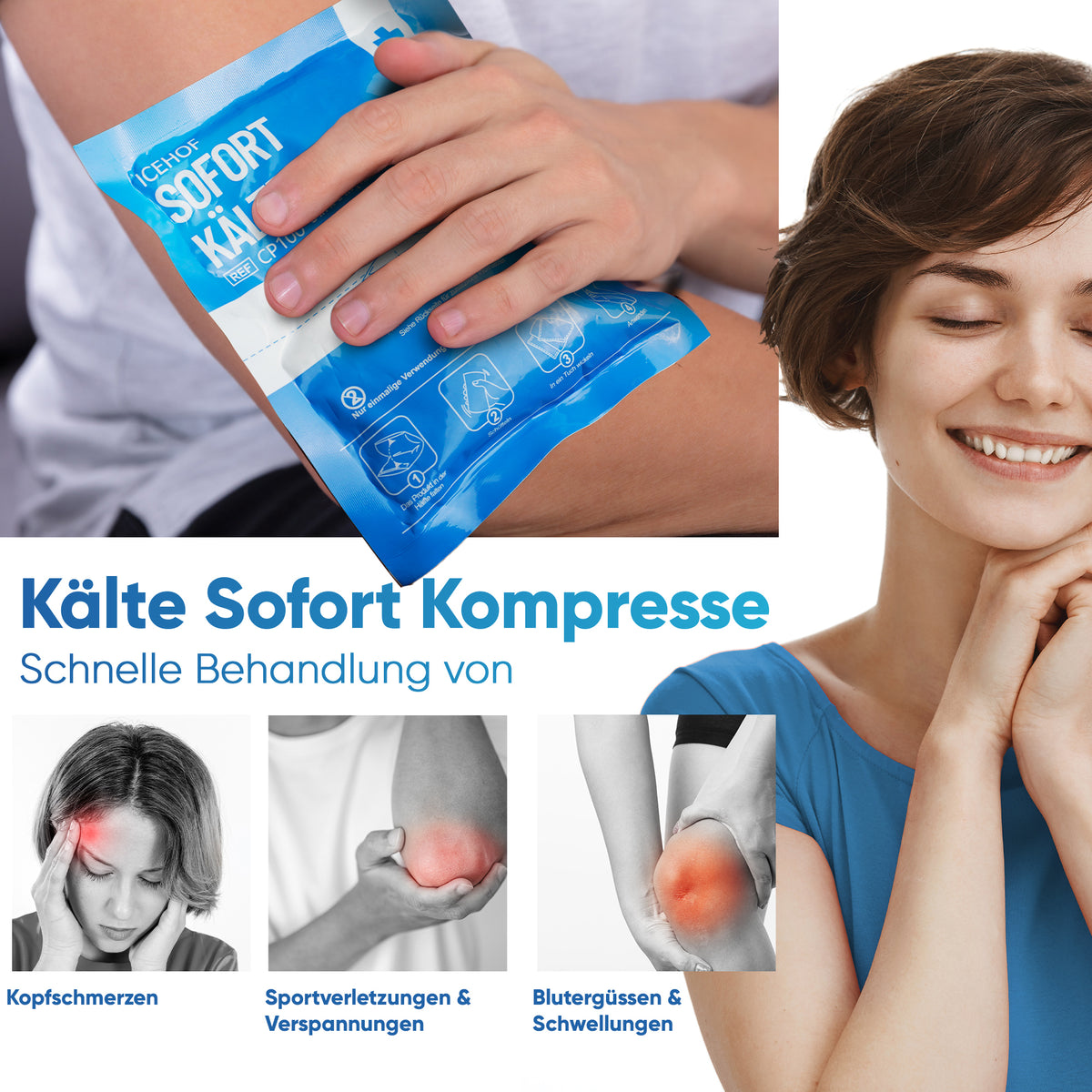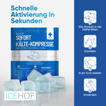 Die ICEHOF Sofort-Kältekompresse aktiviert sich durch einfaches Knicken und kühlt sofort – ganz ohne Kühlschrank oder Gefrierfach. Ideal bei Prellungen, Verstauchungen, Schwellungen, Insektenstichen oder Verletzungen.