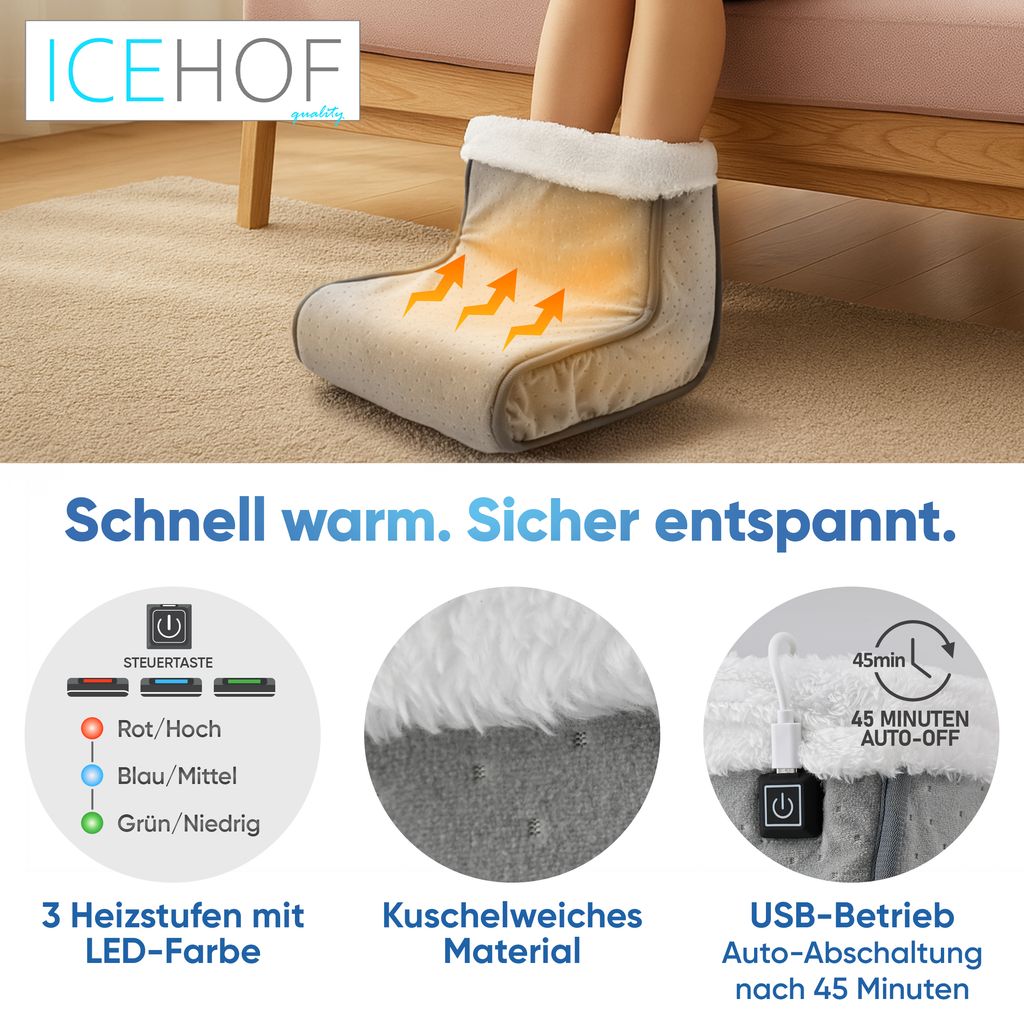 Nie wieder kalte Füße! Der elektrische Fußwärmer mit integriertem Heizelement bietet sofortige Wärme und Entspannung – ideal bei kalten Böden oder langen Arbeitstagen.